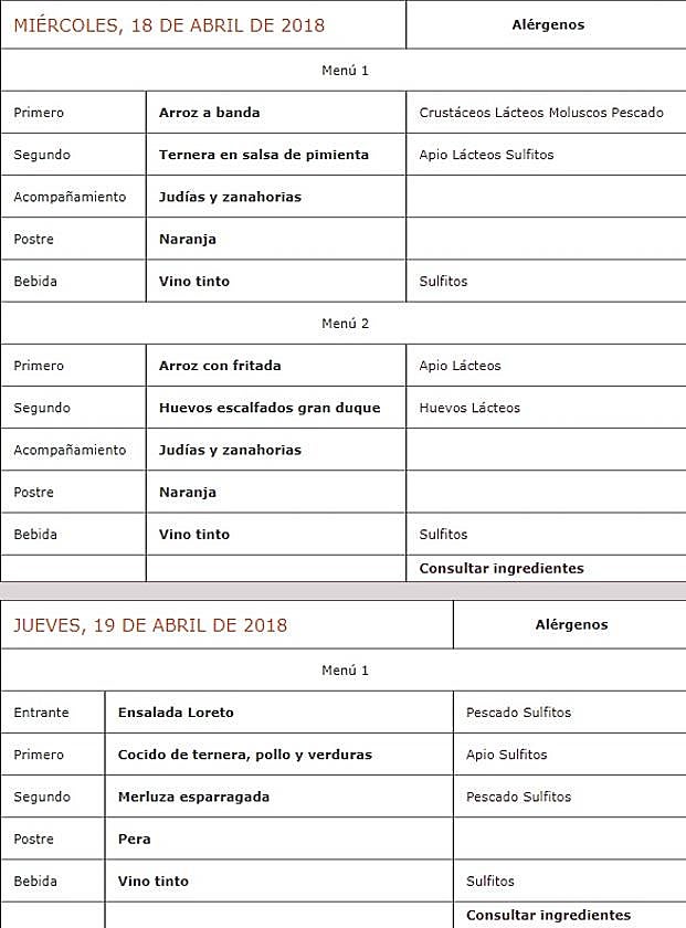 Así, ya podemos ver los menús de la semana del 16 al 21 de abril:
