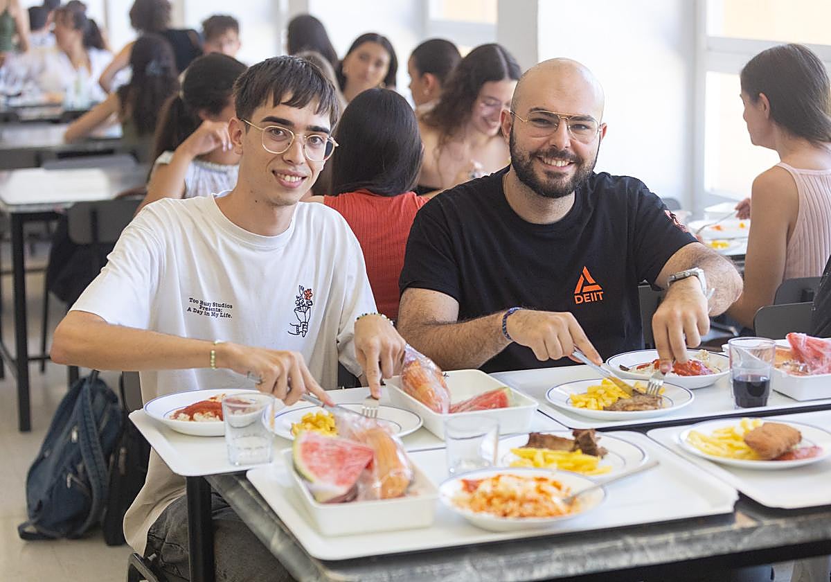 El comedor, sin embargo, no es solo cosa de veinteañeros. Manolo, de 80 años, y Paco, de 76, también tienen su menú. Son estudiantes del aula permanente de formación abierta y lo viven con la misma ilusión. «Lo echaba de menos», confiesa Manolo. «Llevo desde julio esperando septiembre: comida fresca, precio económico, siempre limpio… y el personal siempre nos trata muy bien». Paco asiente y sentencia: «Aquí saben guisar, y muy bien».
