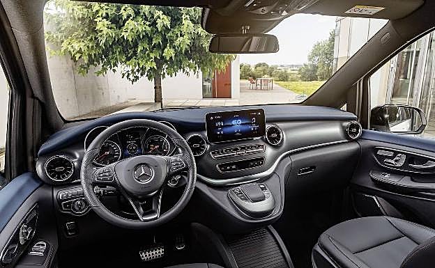 A nivel estético, se distingue por un frontal EQ específico, llantas de 17», retrovisores de color negro o distintivos EQV en las aletas y en ... el portón trasero. En el habitáculo aparece el sistema multimedia MBUX, con pantalla de 10,25» y navegador, con menús específicos EQ, e información sobre el consumo energético, carga de batería, etc... También cuenta con 'Mercedes me', que permite al usuario, desde su teléfono, programar la carga o la climatización del habitáculo, además de consultar información sobre el vehículo.