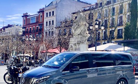 Después de subir al castillo, continuamos ruta hacia Aranjuez por la carretera M-305 y volvimos a Madrid por la A-4. Nos adentramos en el Barrio de las Letras, al que pudimos acceder a través de la Plaza de Santa Ana y callejear por esa atractiva zona donde solo pueden circular vehículos eléctricos etiqueta CERO, como la EQV, que se mueve a las mil maravillas también por este área.