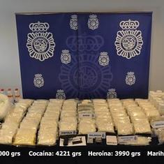 Los agentes también localizaron 4.221 gramos de cocaína, 3.990 gramos de heroína, 500 gramos de marihuana y una pistola de 9 milímetros