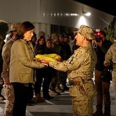 Sáenz de Santamaría, durante la ceremonia del arriado de la bandera en Herat.
