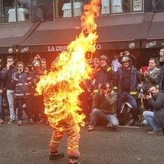 Un bombero simula quemarse a lo bonzo ante la Junta para protestar