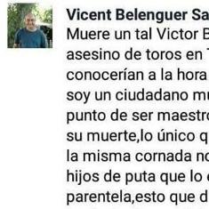 El controvertido comentario fue el siguiente: "Muere un tal Víctor Barrio de profesión asesino de toros en Teruel (en su casa lo conocerían a la hora de la siesta) yo que soy un ciudadano muy 'educado' hasta el punto de ser maestro me alegro mucho de su muerte, lo único que lamento es que de la misma cornada no hayan muerto los hijos de puta que lo engendraron y toda su parentela, esto que digo lo ratifico en cualquier Lugar o juicio. Hoy es un día alegre para la humanidad. Bailaremos sobre tu tumba y nos mearemos en las coranas de flores que te pongan ¡Cabrón!".