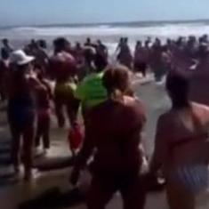 Uno de ellos resultó espectacular. Como se puede apreciar en este vídeo, una cadena humana formada por unas treinta personas sacó del agua a un bañista, que tenía serios problemas para llegar a la orilla.