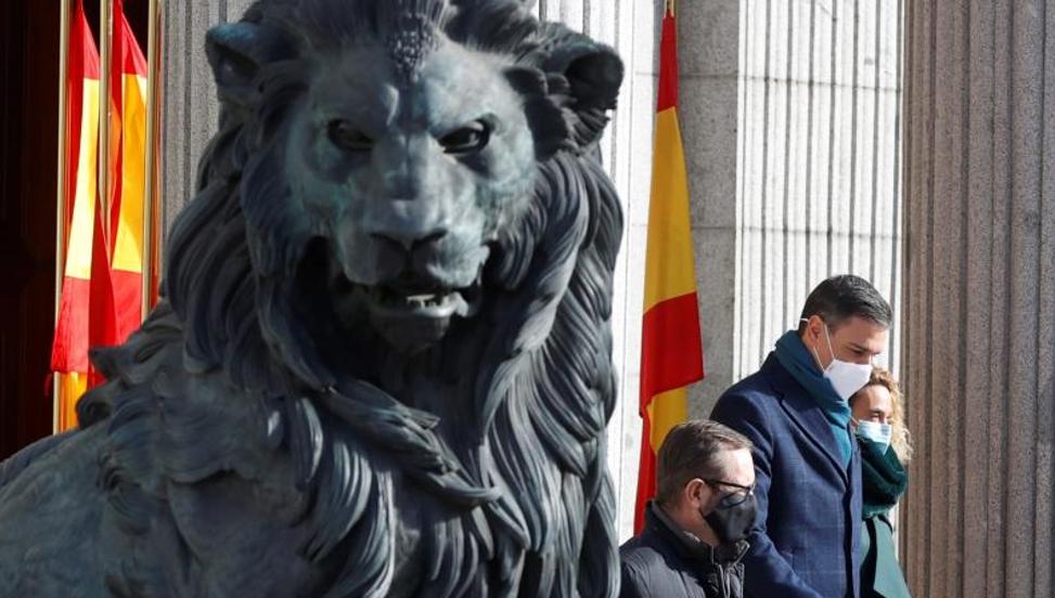 El discurso se ha realizado en las escalinatas del Congreso un año más por las restricciones sanitarios por el coronavirus. La presidenta estuvo acompañada del presidente del Gobierno, Pedro Sánchez, y los presidentes del Constitucional, Pedro José González-Trevijano, y del Poder Judicial, Carlos Lesmes.