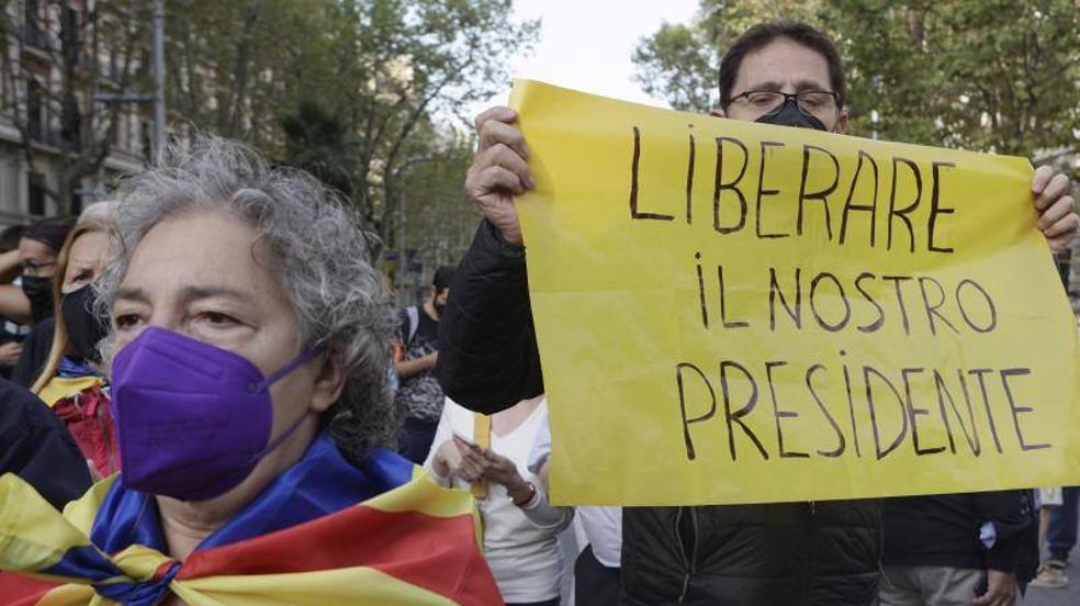 La protesta era en un primer momento para denunciar la detención, luego para celebrar la puesta en libertad de Puigdemont y finalmente se ha convertido en un acto de rechazo contra la mesa de diálogo entre el Gobierno central y la Generalitat. «Fuera la mesa, fuera la mesa» es el grito que más se ha escuchado junto con el de «President, el nostre president». Parecido a la manifestación convocada por la mañana frente al Consulado italiano en la capital catalana, al que han acudido varios cientos de personas.