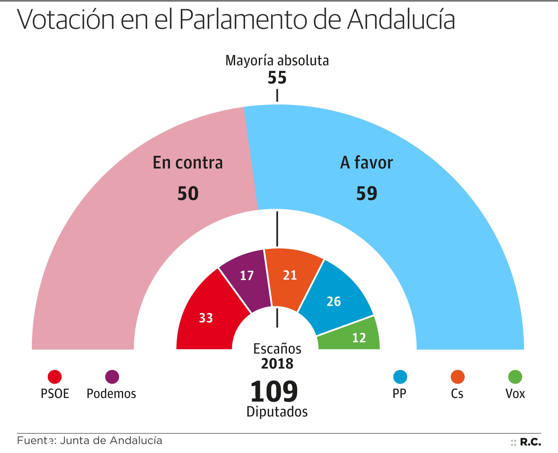 El popular Juan Manuel Moreno Bonilla se convirtió este miércoles tarde en el primer presidente de la Junta de Andalucía en casi 37 años ... que no procede del PSOE, gracias al apoyo de los 59 diputados que suman su propia formación, Ciudadanos y Vox, la otra gran novedad de la XI legislatura andaluza.