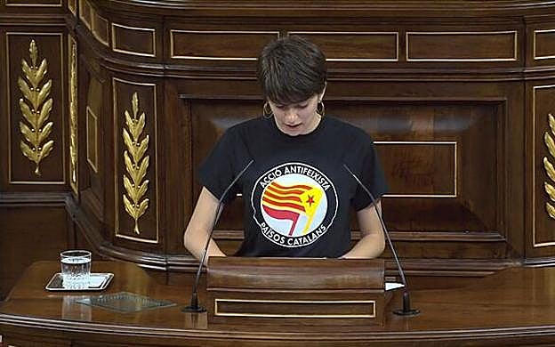 R.C. Marta Rosique, ERC, es la diputada más joven del nuevo Parlamento. Feminista, republicana, ferviente separatista y antimilitarista declarada. Su camiseta ha dado mucho que hablar en redes. «Acción antifascista. Países catalanes», se puede leer en la prenda. Además, también ha llevado serigrafiada una Estelada.