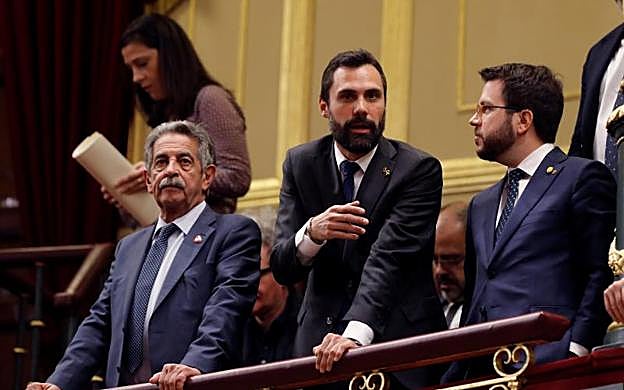 Efe En la tribuna de invitados miembros de la Generalitat de Catalunya, como el vicepresidente Pere Aragonès. También el presidente del Parlament Roger Torrent. Junto a ellos, Miguel Ángel Revilla.