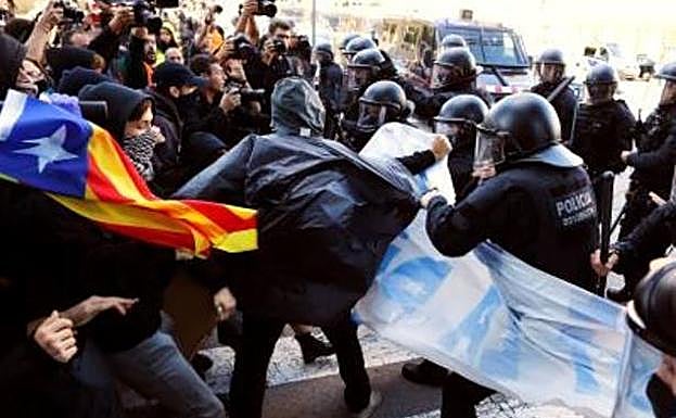 Batalla campal en Girona entre la Polícia catalana y manifestantes secesionistas