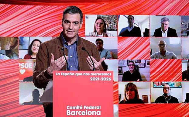 No había reunido al Comité Federal del partido, el máximo órgano entre congresos, desde hacía casi un año, el 15 de febrero de 2020. Ese es el tiempo que el secretario general del PSOE llevaba sin rendir cuentas de su gestión ante los suyos. Este sábado lo hizo con un discurso en el que presumió de la labor del Gobierno pero no de la coalición con Podemos, a la que no hizo la menor mención. Lejos de reivindicar su alianza, delizó de hecho varios reproches a su socio, y defendió el papel histórico del PSOE como «verdadera izquierda».