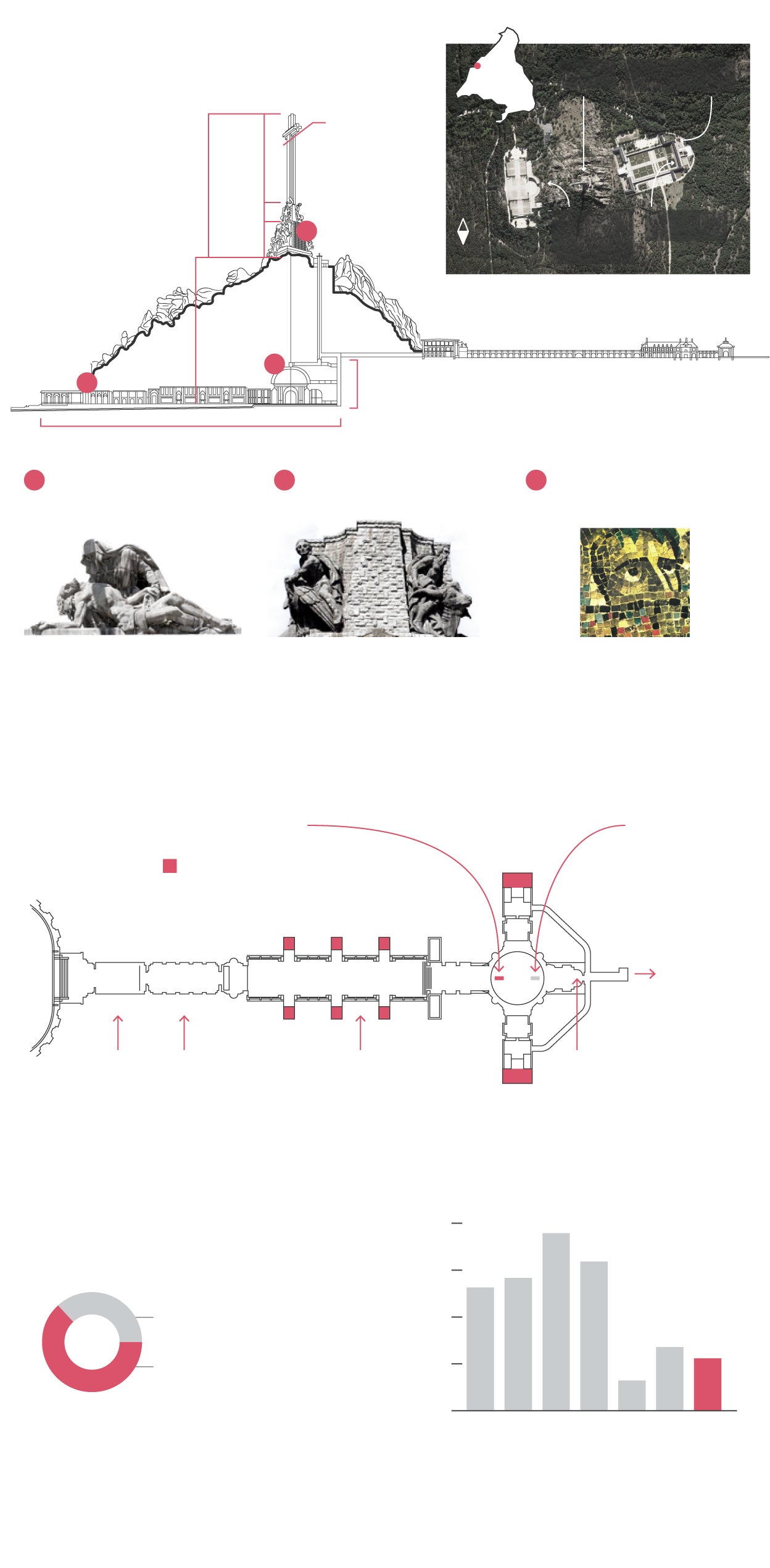 Nada de eso parece molestar a los turistas que trepan hasta el Valle, a quienes, lejos de la polémica, les impresiona sus colosales estructuras de piedra y ese lóbrego corredor de 261 metros de largo que conecta bajo la mole de la montaña el presbiterio con la majestuosa explanada exterior. A los lados de esa galería eterna reposan, en columbarios en muy mal estado, los restos de decenas de miles de víctimas de la contienda, custodiados por inquietantes figuras de granito con aspecto de monjes templarios y arcángeles de bronce de 7 metros de altura.