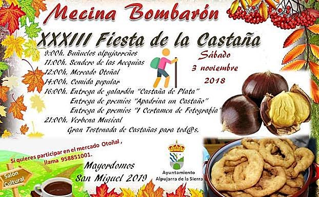 Este 2018, la festividad tendrá lugar el sábado 3 de noviembre en Mecina Bombarón y Yegen. El programa de festejos contempla rutas a los castañares, senderismo, exposiciones de artesanía y productos alpujarreños, almuerzo gastronómico tradicional y reparto de premios.