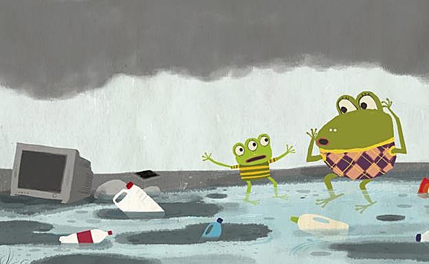 Rana de Tres Ojos crece en un lugar contaminado. Salta muy alto para entender lo que sucede. Pronto descubre que quiere cambiar las cosas… ¿Conseguirá hacerlo sola? Un cuento para ilusionarnos con la búsqueda de soluciones comunes.