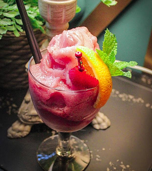 En pleno Realejo, en la calle Sacristía de San Rafael, se encuentra esta coctelería con una trayectoria de más de 14 años en la ciudad. Albert Miralles propone este anti-gintonic dedicado a enamorar a aquellos que detestan esta famosa combinación. «El gintonic clásico es como un matrimonio: amargura y sequedad», bromea Millares. Esta propuesta pretende conseguir todo lo contrario: frescor y dulzura.
