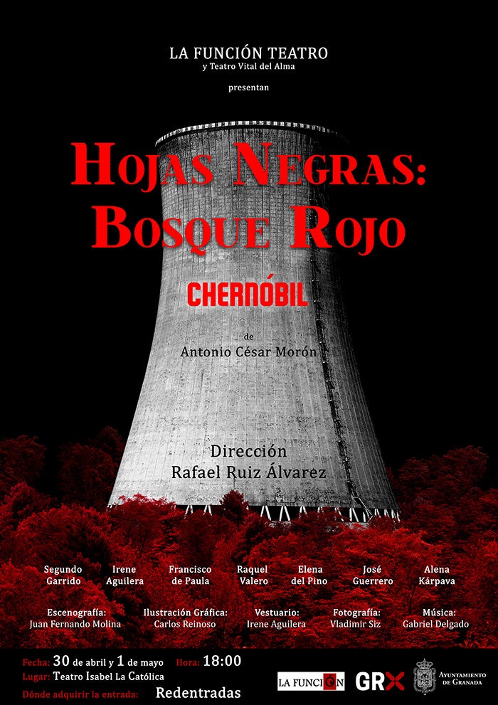 'Hojas Negras: Bosque Rojo', de Antonio César Morón, es una obra sobre la imagen que le llegó al autor sobre la catátrofe de Chernóbil, construida a base de emociones infantiles mientras miraba el programa de televisión 'Informe Semanal. A partir del texto, el director teatal Rafael Ruiz Álvarez ha creado una dramaturgia con una original puesta en escena.