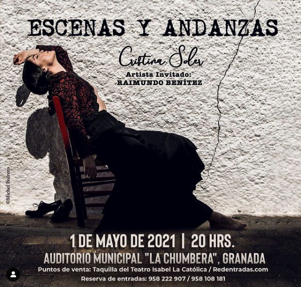 Instagram: @cristinasolerbailaora La bailaora granadina Cristina Soler llega a La Chumbera con su espectáculo 'Escenas y Andanzas', en el que será su primer encuentro con el público en este 2021. Estará acompañada a la guitarra por José Fermín y al cante por Sergio El Colorao y Juan Ángel Tirado. El bailaor Raimundo Benítez será el artista invitado.