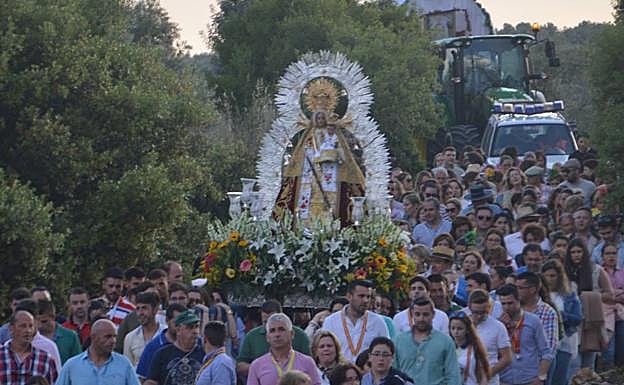 Ya el día 3 de mayo se procesiona a hombros a la Virgen desde su Ermita y hasta la Iglesia de San Juan Bautista. Desde hace una década, la entrada de la Virgen al pueblo es recibida con una quema de fuegos artificiales y con una lluvia de pétalos que realizan los vecinos y vecinas desde sus balcones a lo largo de toda la calle Ramón y Cajal. Una vez en la Iglesia, se vuelven a cantar 'los mayos' que ponen fin a la Romería.