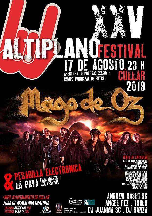 La XXV edición del Altiplano Festival se celebrará en el municipio granadino de Cúllar con la mítica banda Mägo de Oz como cabeza de cartel, acompañada de Pesadilla Electrónica y La Pava, grupo cullarense fundador del festival.