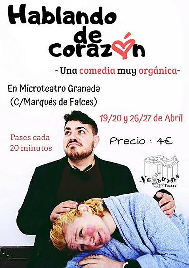 Vuelve el microteatro a la calle Marqués de Falces, 2, con una comedia llamada «Hablando de corazón». Se trata de una divertida pieza teatral de 15 minutos de duración, en la que el público se integra en el escenario. Las distintas sesiones se desarrollarán desde las 21:00 horas del viernes 19 de abril hasta las 01:00 horas.