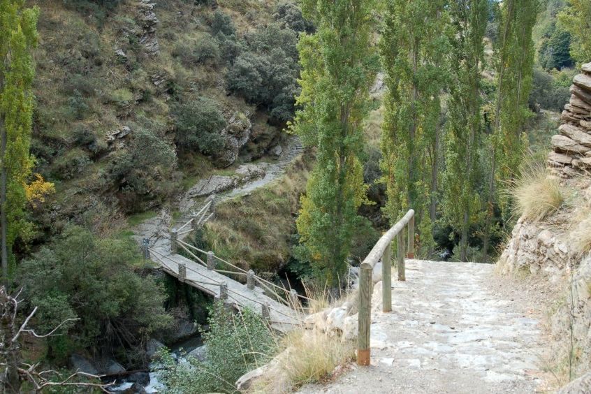 Se trata de un sendero circular que comienza en el pueblo para regresar al mismo punto después de pasar por el antiguo poblado de la central hidroeléctrica del río Poqueira que aún funcionaIDEAL