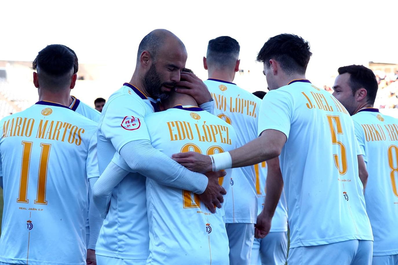 Real Jaén: Javi Sánchez, Espín (Rodri, min. 64), Jesús del Amo, Urko (Zaki, min. 64), A. López (Armengol, min. 74), Adri Paz, Mario Martos, Sergio Pérez (Fran Moreno, min. 82, Óscar Lozano, Lolo Armario (Lara, min. 74) y Edu López.