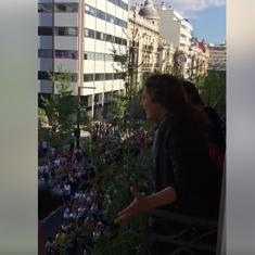 La protagonista es la granadina Estrella Morente, quien desde un balcón en la Gran Vía le canta a la Virgen del Sacromonte tras su salida el pasado Miércoles Santo.