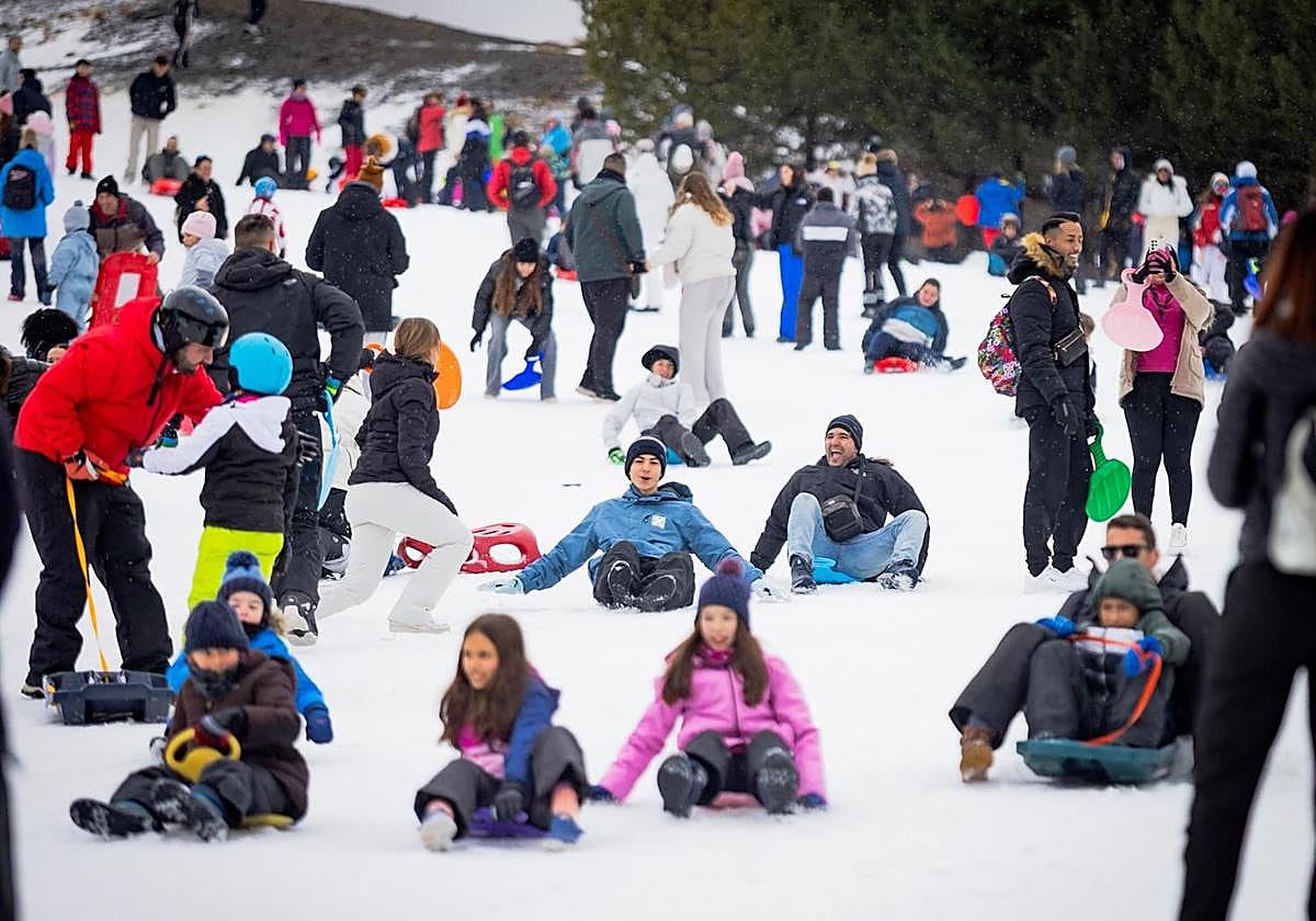 Marea de trineos en la pista del Río por el cierre de la estación: «Nos ha venido de perlas»Cientos de personas han invadido las pistas para jugar en la nieve, algo inusual en febrero, en mitad de la temporada