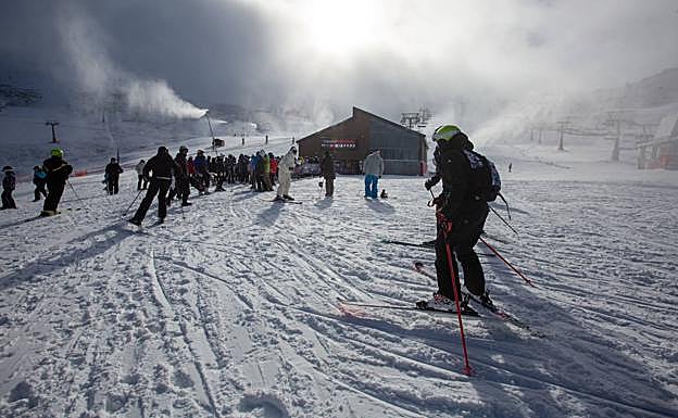 Cuando se llega a Borreguiles hay surferos y esquiadores. Todos de estreno. Hacen cola ante el gran protagonista de la jornada, el telesilla Emile Allais, que los lleva en volandas a las zonas superiores de las pistas. Aquí es donde se aprecia a la perfección la alegría de la jornada.