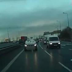 Sucedió a la altura del puente Barton en Manchester, Reino Unido, y afortunadamente nadie salió herido