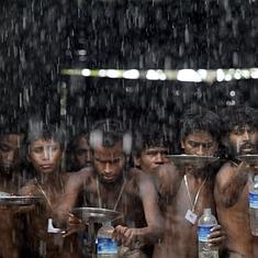 Varios inmigrantes recogen agua en el campo de refugiados de Kayin Chaung, en Birmania.