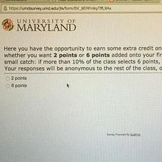 Así reza, textualmente, una de las cuestiones incluidas en su test: "Aquí tienes la oportunidad de ganar unos puntos extra en la puntuación de tu trabajo. Selecciona si quieres añadir dos o seis puntos a tu puntuación final. Pero hay un pequeño truco: si más del 10% de la clase selecciona la opción de los seis puntos, nadie conseguirá ninguno. Las respuestas serán anónimas, y sólo yo podré verlas".