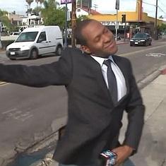 Este reportero del canal Fox 5 San Diego aprovechó el parón publicitario para bailar al ritmo de la música y entretener, ya de paso, a los viandantes que pasaban a su lado.