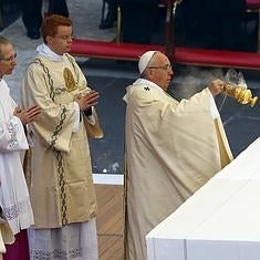 El Papa, de 78 años, con el rostro serio y algo cansado, celebró primero la misa desde un altar instalado frente a la explanada ante cientos de cardenales, obispos y sacerdotes, además de fieles, muchos de ellos provenientes de toda Italia. "Hoy cruzando la Puerta Santa queremos también recordar otra puerta que, hace cincuenta años, los padres del Concilio Vaticano II abrieron hacia el mundo (...). Fue un verdadero encuentro entre la Iglesia y los hombres de nuestro tiempo", dijo. "Fue un impulso misionero" para que la Iglesia "vuelva a tomar el camino para ir al encuentro de cada hombre allí donde vive: en su ciudad, en su casa, en el trabajo", ha añadido. Francisco ha invitado a la Iglesia a recuperar el "espíritu del samaritano", para salir a proclamar la alegría del amor al mundo, el perdón y la reconciliación.