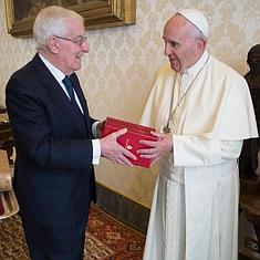 El papa Francisco ha recibido en audiencia privada en el Vaticano al actual director del Instituto Cervantes, Víctor García de la Concha, quien le ha ... regalado un ejemplar de una edición especial de 'El Quijote', con motivo del IV Centenario del fallecimiento de Miguel de Cervantes. La entrega oficial del ejemplar especial de la novela cumbre de la literatura española ha sidoe celebrada en la biblioteca privada del Papa.