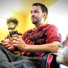 Y es verdad. Cuesta un rato convencerle para que ponga cara (barba desde que le salió el primer pelo en el rostro, piercing en la nariz) a su talento y muestre su sancta santorum. Cuando se relaja, cuenta divertido el día que tuvo que ir a Los Ángeles a llevarle sus primeras máscaras a Madonna. «Allí me esperaba un asistente vestido con un traje de mil rayas espectacular. Cuando me vio vestido en chandal debí parecerle muy raro».