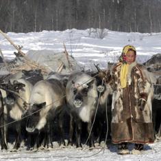 Pastores de la etnia Nenet cuidan su rebaño de renos en Nadym, Siberia.