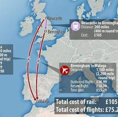 La historia la recoge el Daily Mail, que recuerda que un billete tren entre sus ciudades les cuesta 105 libras, unos 120 euros. Sin embargo, a Lucy le salía viajar de Newcastle a Málaga por 19,98 libras (ida y vuelta), unos 23 euros, con Ryanair. Y a Zara, su viaje de Birmingham a Málaga (con Vueling) le costó 55,29 libras, unos 62 euros, ida y vuelta.