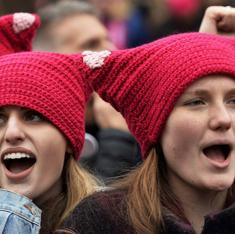Decenas de miles de manifestantes lucieron el gorro rosa con orejitas contra Trump. Muchas famosas se unieron