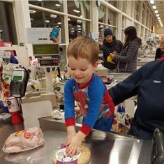 No obstante, esta cajera hizo que Caleb se sintiera totalmente cómodo. Cuando el pequeño llegó a la caja ella le ayudó metiéndolo detrás de la caja y dejándole pasar los productos por el escáner.