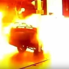 Un conductor de Uber se estrella contra un gasolinera y crea una bola de fuego