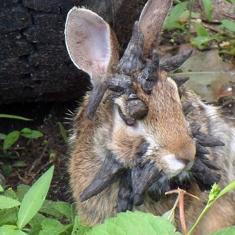 La familia Boettcher, en Mankato, Minnesota, descubrió el pasado mes en el jardin trasero de su casa un conejo algo diferente a los demás. Y ... es que el animal padece una enfermedad que le ha ocasionado la aparición de tumores en forma de cuernos por toda su cabeza.