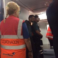 Al aterrizar, los servicios sanitarios se llevaron al hombre que produjo el altercado, que iba acompañado por su novia, y todo acabó sin que se produjera ningún herido.