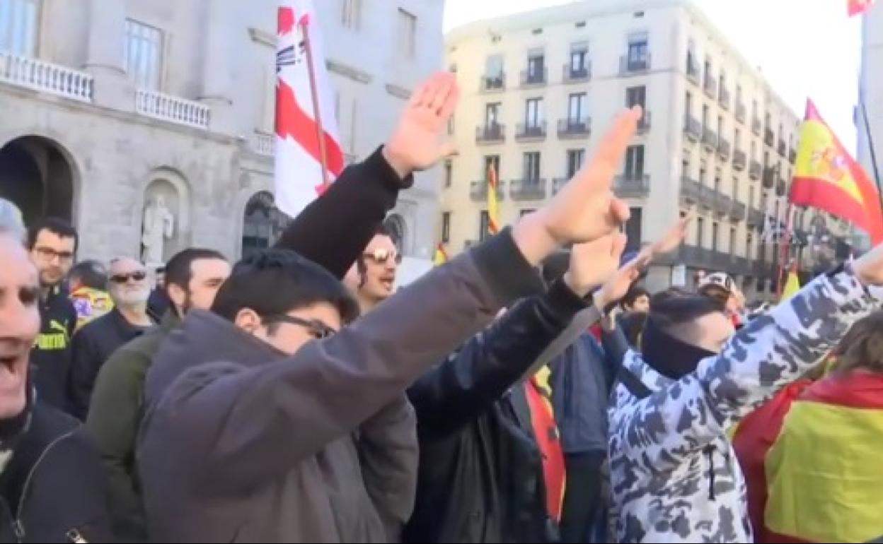 Unas mil personas han acudido a la plaza de Sant Jaume en Barcelona convocadas por la formación ultraderechista Vox para reclamar la «unidad de España». ... A la misma ha acudido un nutrido grupo de ultraderechistas que ha acabado entonando el 'cara al sol' y realizando el saludo fascista.