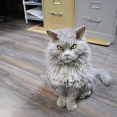 Este felino de Minnesota (Estados Unidos) está siempre enfadado y por su pelaje ondulado, característica principal de su raza, Selkirk Rex | Es robusto y musculoso, al contrario que los de las otras razas de rex y además tiene un carácter tranquilo, abierto y amistoso