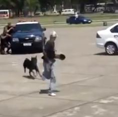 La policía brasileña estaba haciendo una demostración de la detención de un delincuente con un perro policía pero la situación se torció bastante