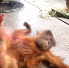 Estas imágenes fueron grabadas en el zoo de Melbourne (Australia). En pleno invierno, los visitantes tiene la oportunidad de disfrutar del pequeño orangután del recinto, ... que tiene unas dotes para el baile innegables.