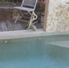 Lucha feroz entre dos serpientes en su piscina