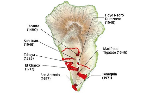 Las primeras bocas partían de las dos fisuras originarias, separadas por 200 metros. A las nueve en esa misma zona se añadió una en las proximidades de Tacande.